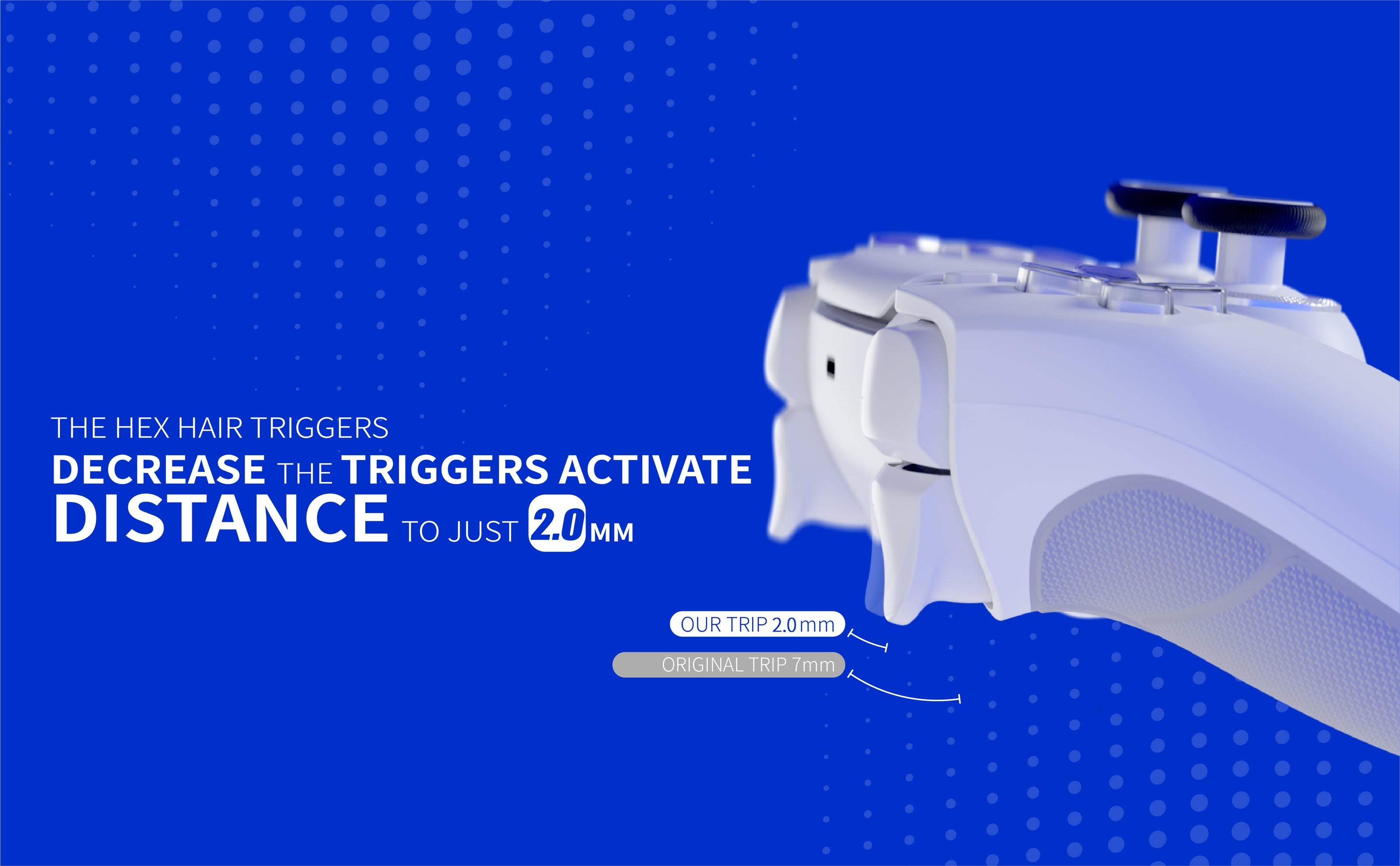 The Hex hair triggers decrease the trigger activation distance to just 2.0mm; all you need to do is press slightly to instantly launch a full fast shoot to save valuable time in competitive games. *These triggers do not work for racing games.