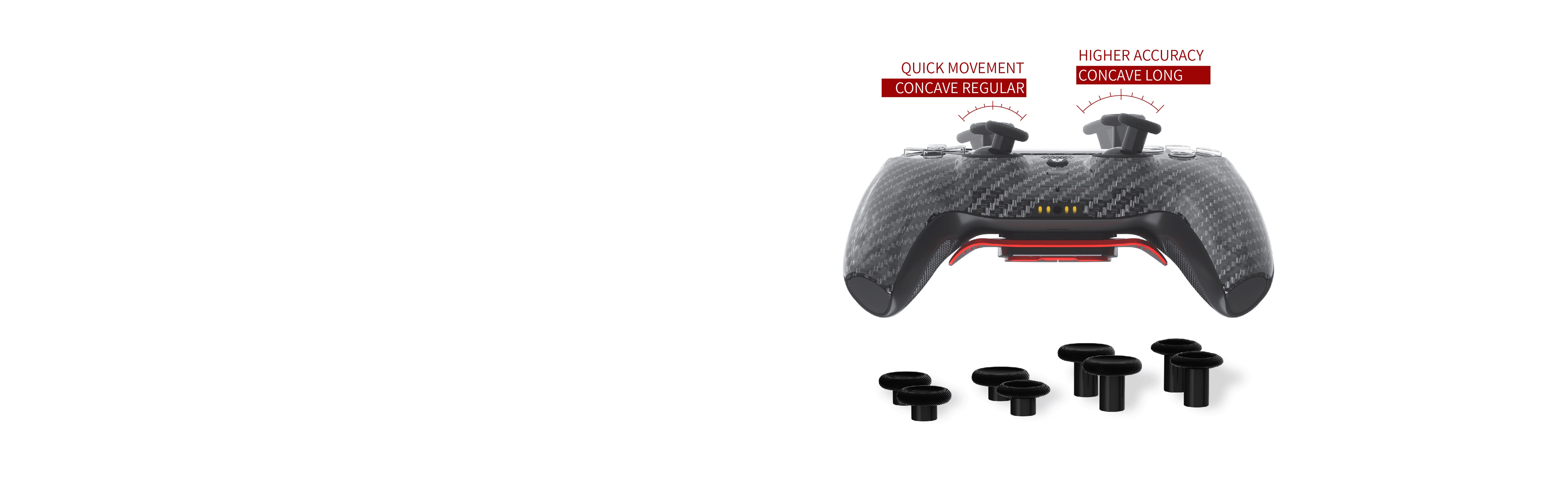 8 in 1 interchangeable thumbstick,2 kinds of heights, and 3 different ergonomic thumb grip designs.