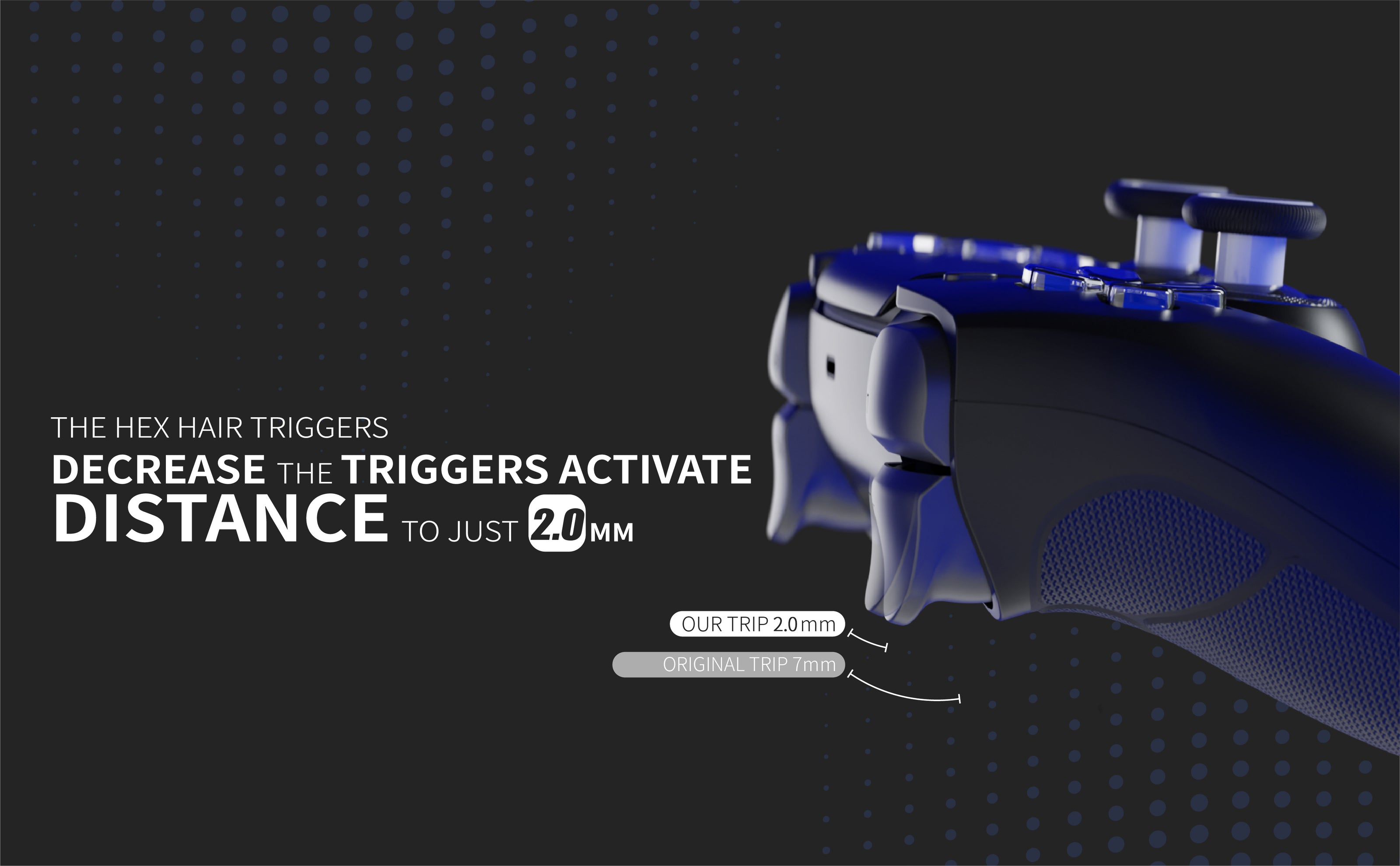 The Hex hair triggers decrease the trigger activation distance to just 2.0mm; all you need to do is press slightly to instantly launch a full fast shoot to save valuable time in competitive games. *These triggers do not work for racing games.