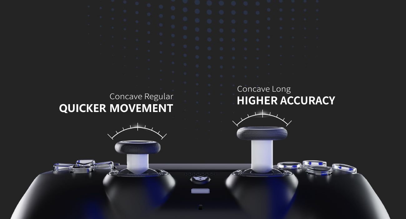 2 kinds of height and 3 ergonomic designs, domed, concave, and concave widened thumbsticks for movement control or accuracy for different hand sizes and to fit your playstyle. Get the edge in FPS esports games with better aiming accuracy.
