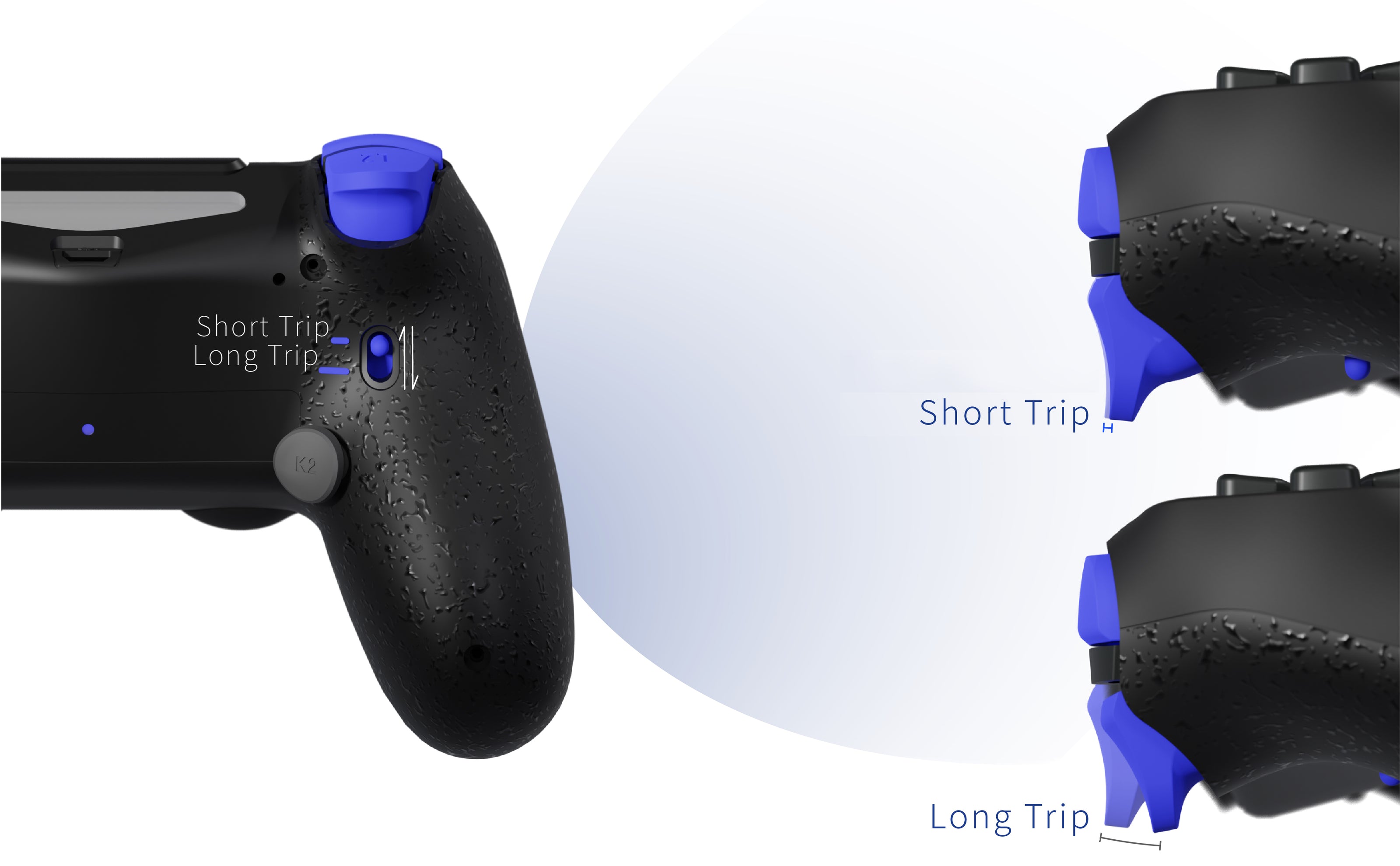 Flip the switches and your triggers activate distance will go from a smooth full pull to a short instant pull.