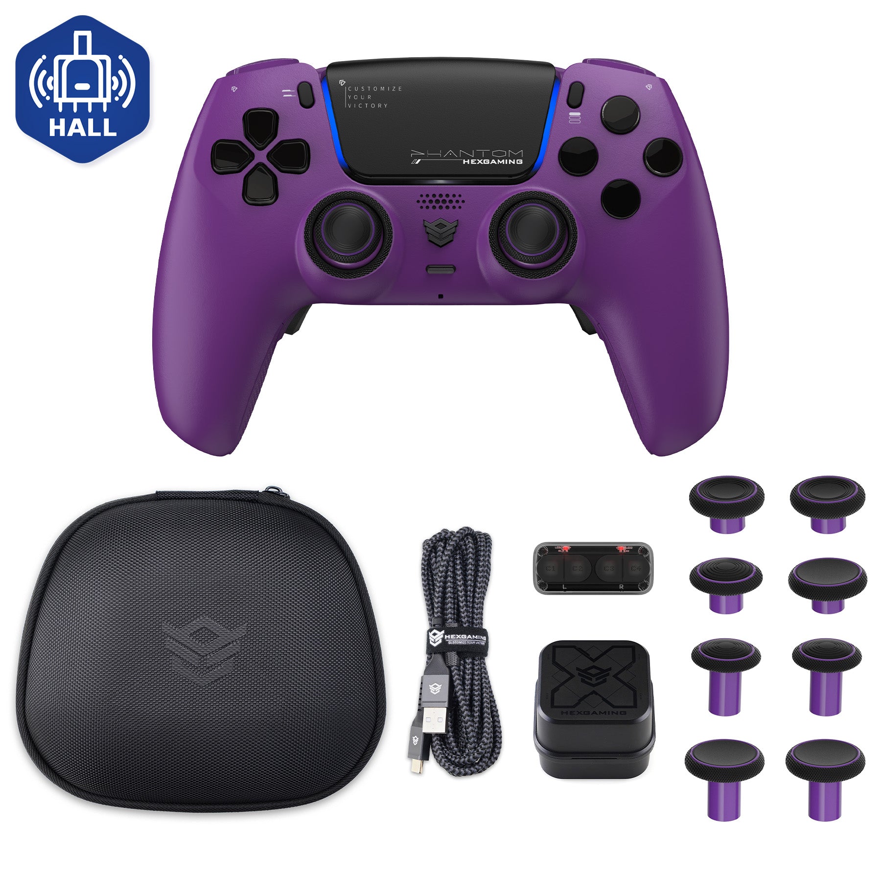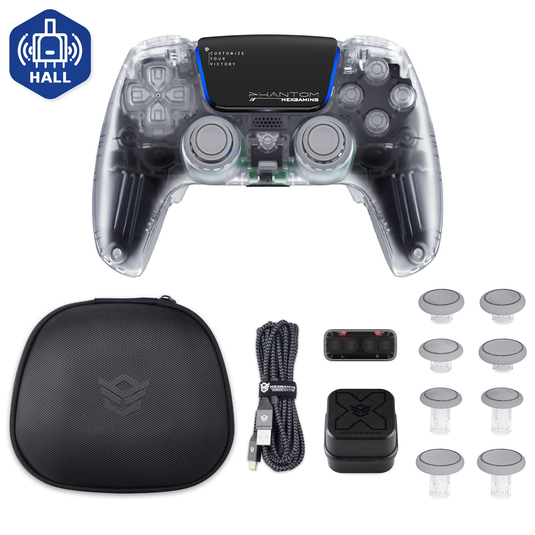 HEXGAMING PHANTOM Controller with Adjustable Triggers+Charging Cable+Carrying Bag for PS5, PC, Mobile - 18 Styles