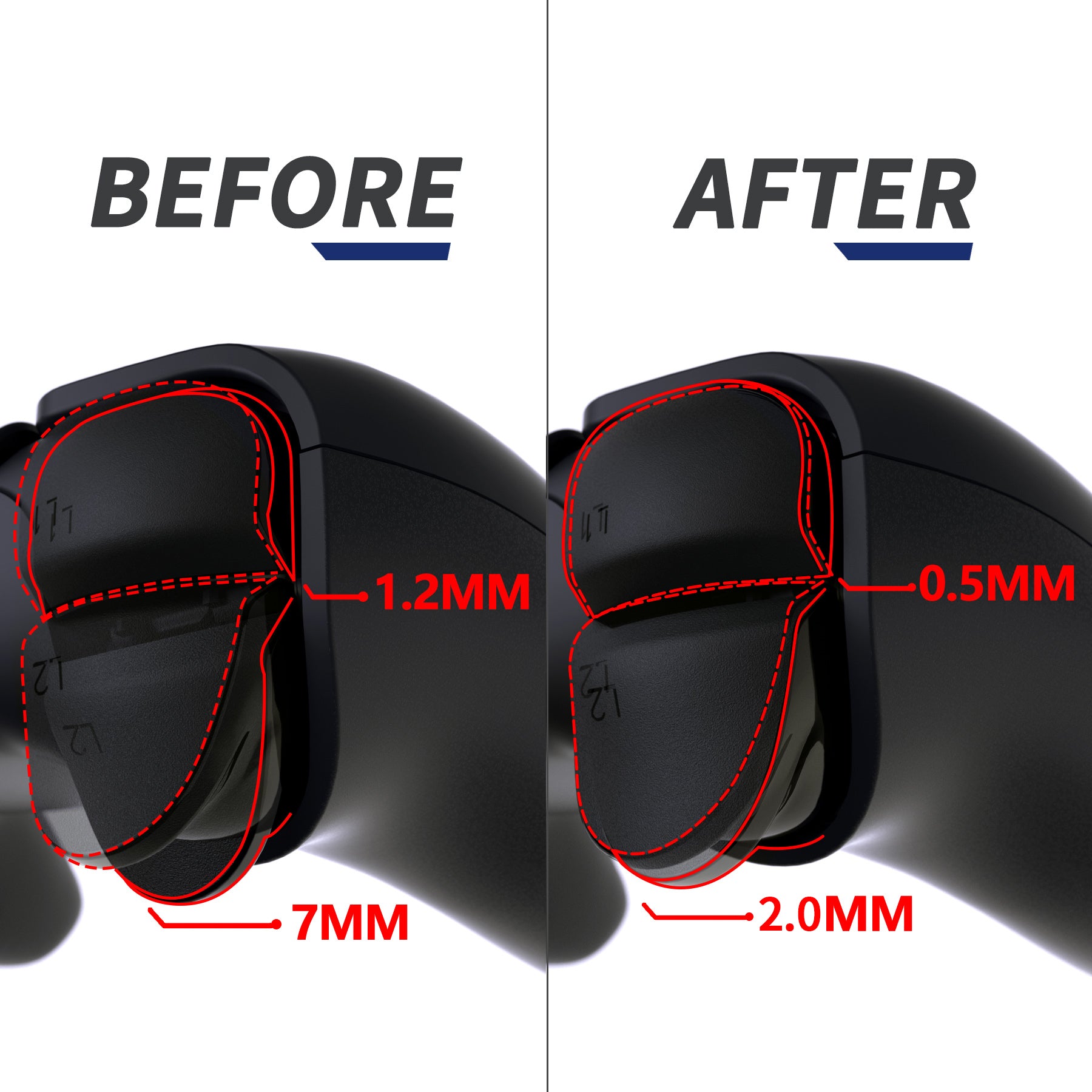 The Hex hair triggers decrease the trigger activation distance to just 2.0mm; all you need to do is press slightly to instantly launch a full fast shoot to save valuable time in competitive games. *These triggers do not work for racing games.
