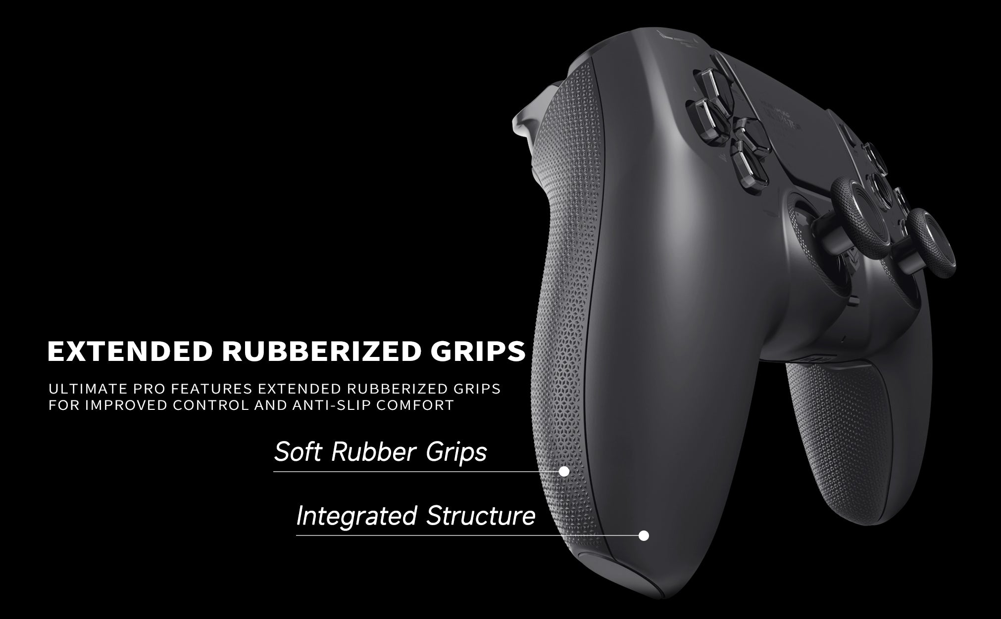 - Play Like a Pro: ULTIMATE PRO features extended rubberized grips for improved control and anti-slip comfort. Its ergonomic design and integrated structure enhance grip stability and reduce fatigue, keeping you focused and comfortable through long, competitive gaming sessions.