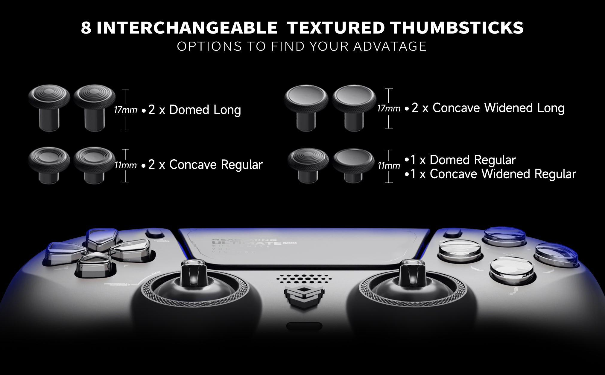 - Get Ideal Stick Grip: Modify your thumbsticks to suit your playing habits. Swap between 8 interchangeable textured sticks to tweak your controller for maximum precision. Find your ideal fit with concave, domed, and extended joysticks for optimal comfort and performance.