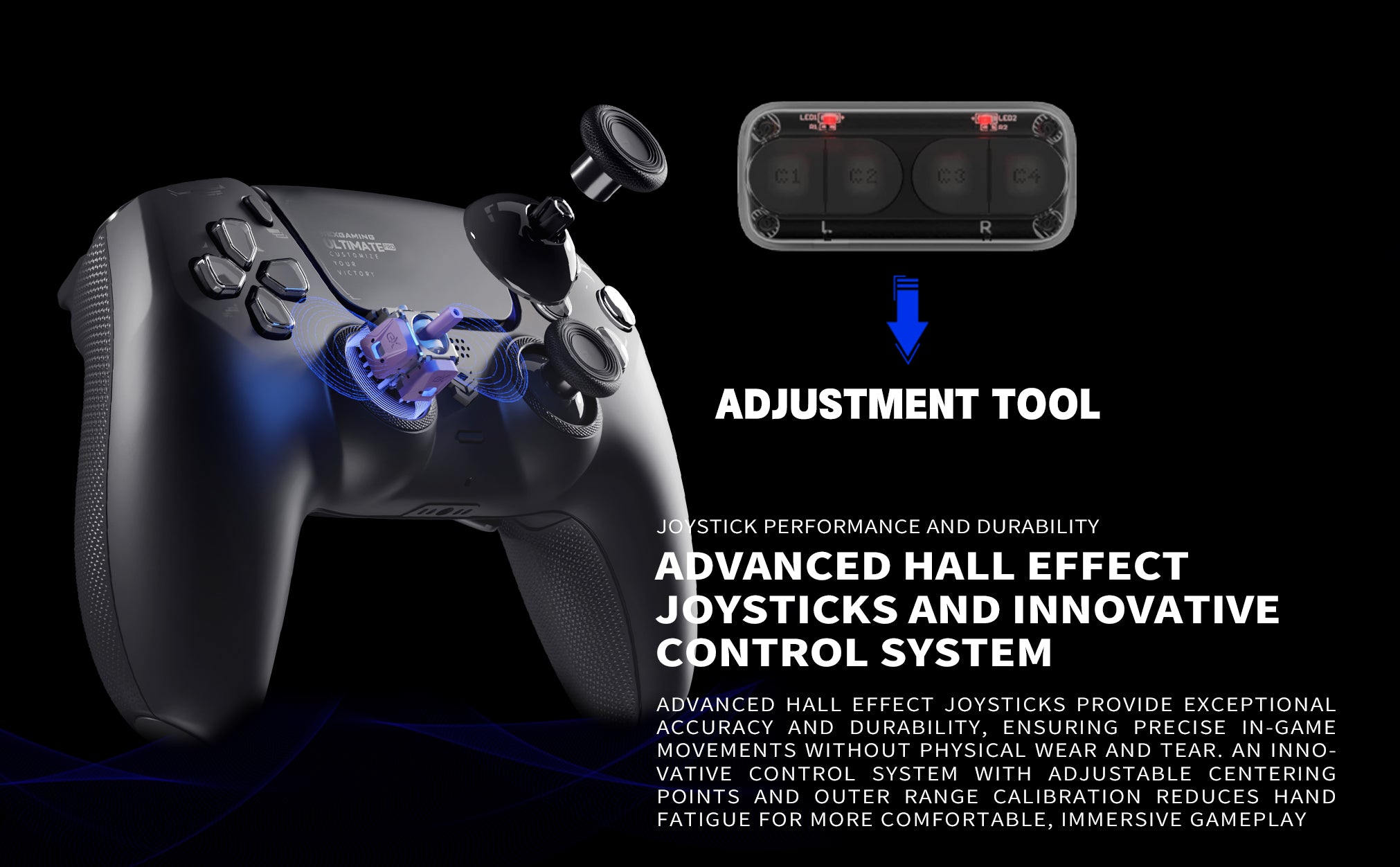 - Two Joystick Options Available: Offset Stick Drift — Keep your thumbsticks at pinpoint accuracy with our exclusive Drifix technology. Adjustable joystick modules let you adjust axis deviations within a 0.12 range to keep your controller’s performance at a premium. Unparalleled Joystick Performance and Durability — Advanced Hall effect joysticks deliver exceptional accuracy, long-lasting durability, and enhanced reliability, allowing for precise in-game movements and improved control with no physical wear and tear. Adjustable centering points and outer range calibration, courtesy of an innovative control system, reduce hand fatigue during extended gaming sessions for more comfortable and immersive gameplay.