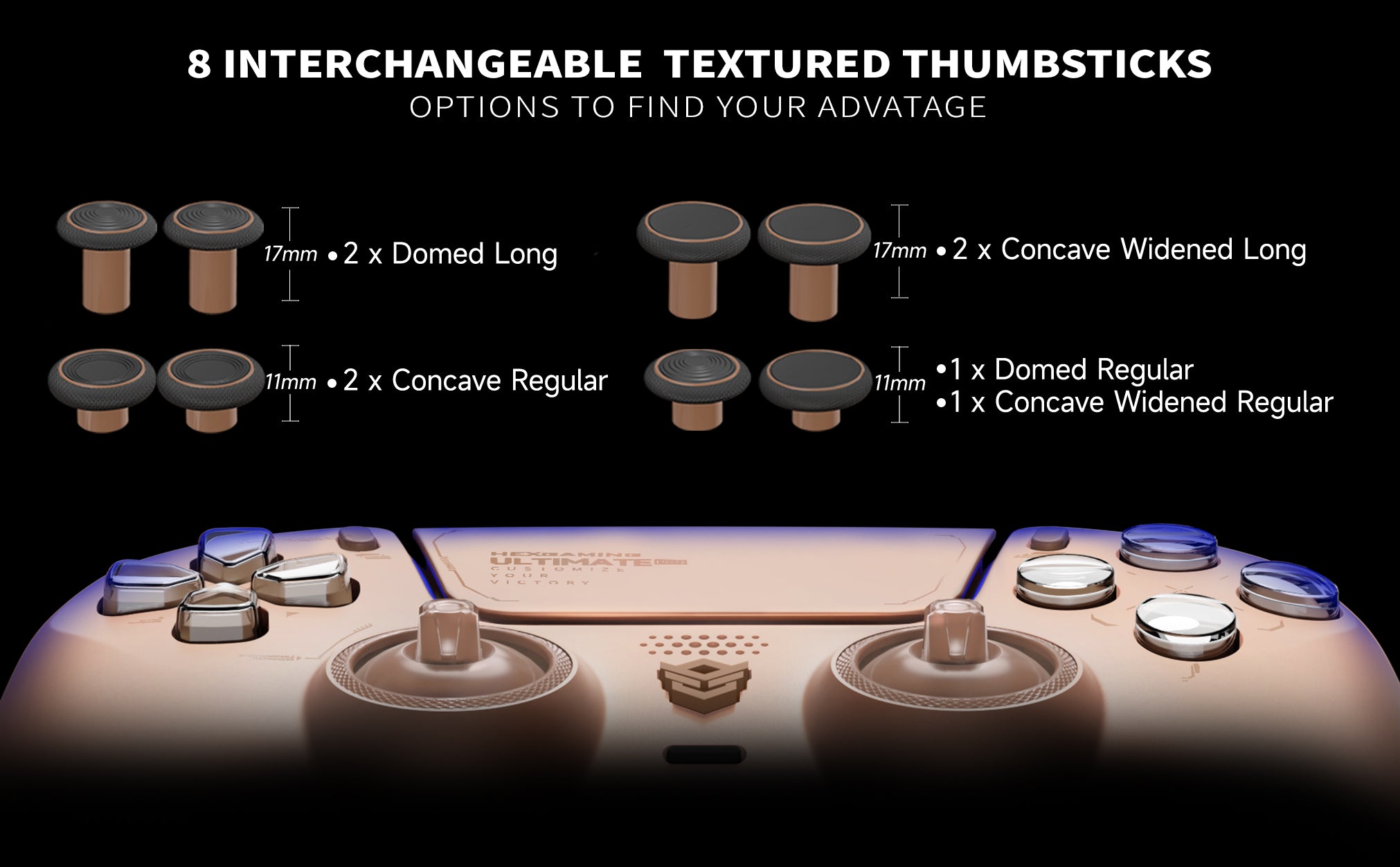 - Get Ideal Stick Grip: Modify your thumbsticks to suit your playing habits. Swap between 8 interchangeable textured sticks to tweak your controller for maximum precision. Find your ideal fit with concave, domed, and extended joysticks for optimal comfort and performance.
