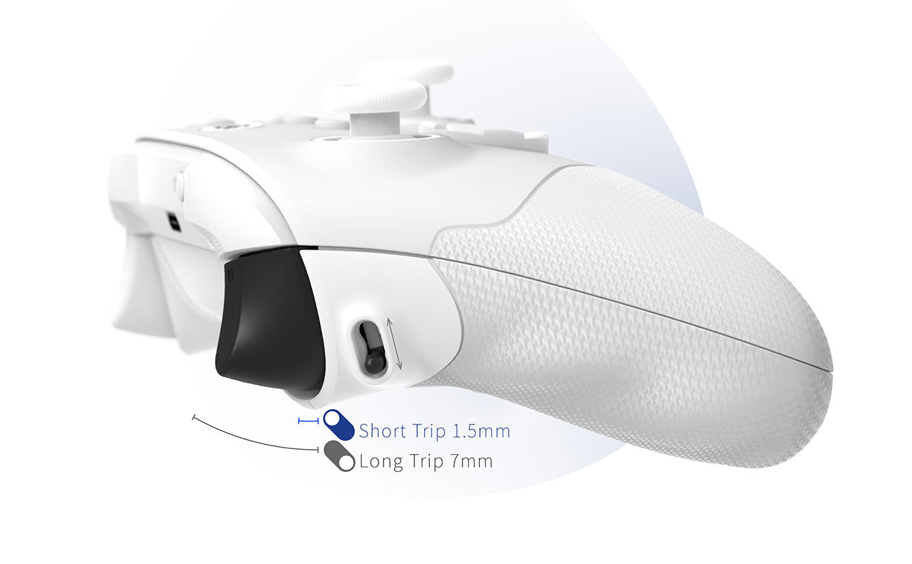 - Flip the switches and your trigger will go from a smooth full-pull to a short clicky action. This hyper-fast. Take your game to the next level with the fully modular ULTRA X CONTROLLER. Interchangeable thumbsticks, adjustable trigger control mechanisms, play wired or wireless, change thumbsticks in seconds, and remappable rear button configurations on the fly. Own this highly engineered controller, and the standard for top-notch gameplay has been elevated.
